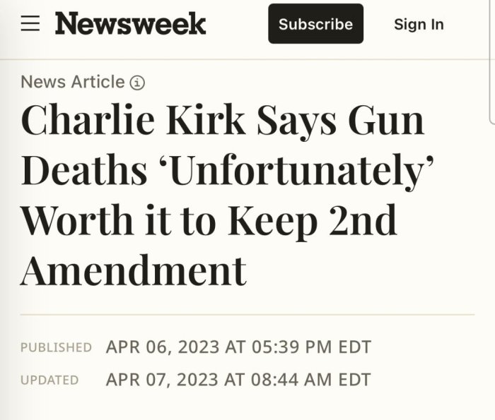 It's ironic, because Kirk said that gun control was bad and it was unfortunate but having some gun deaths was necessary to protect the 2nd amendment and individual rights and freedoms. He became a victim in support of his own personal beliefs with the very result he was espousing.Yea but he wanted to protect the second amendment!