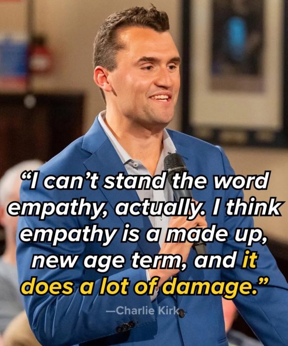 FYI: I didn’t like Charlie Kirk but I did agree with some of his points he brought up when he debated idiotic students on campuses. Did I rejoice when I heard the news? No because I’m a normal human being with a brain and half a heart - I’m not some deranged lunatic who thinks violence is a valid response to disagreement.