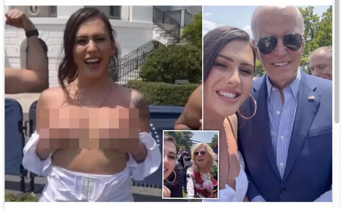 A transgender model has been banned from the White House after going topless at a Pride Event where she met President Joe Biden.www.dailymail.co.uk