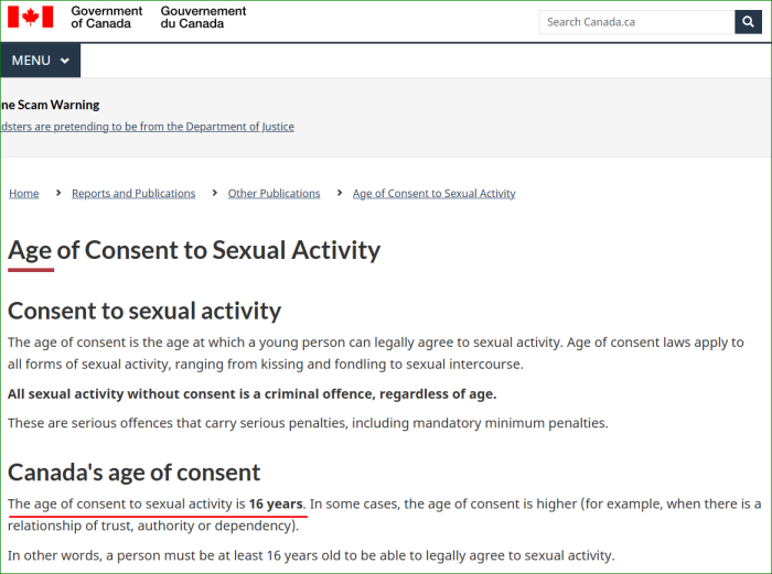 Hate to break it to you, but the age of consent in Canada is indeed 16.