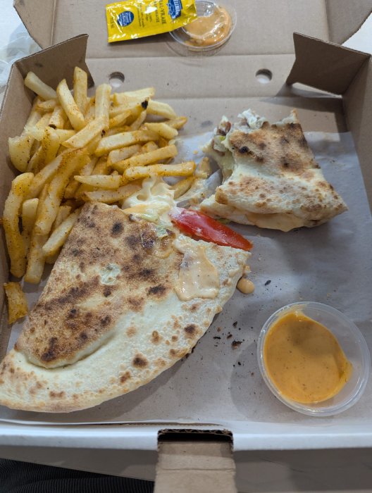 Such a shitty weather today, didn't want to get up, was so sleepy all day. I indulged myself in a nice philly cheese steak makloub and friesView attachment 101864