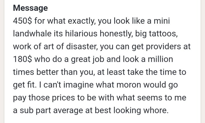 The point she was making is why do you bother commenting at all on a language you don’t speak or understand and argue with local French speakers.I have no idea how you say I should know crappy French from non-crappy French I wouldn't have the foggiest idea whatsoever. Nor do I make any assumptions as to which French speaker on this board has a Doctorate in French and who doesn't. In fact for all I know a French Professor at McGill could PM me and say, "hey EB- everyone who commented on your post- guess what! Their French sucks money balls." There is no way for me to objectively assess any of that. Or the credibility of such a PM if I got one.