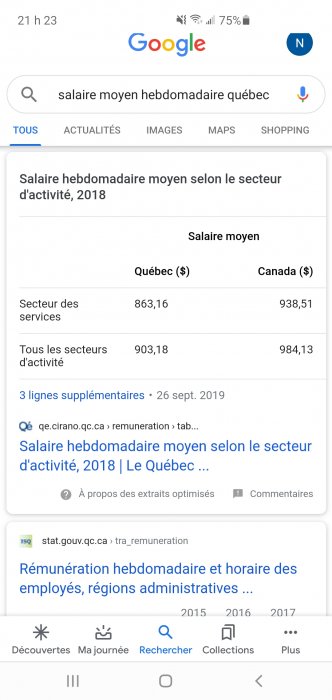 In Montreal, the average household gross income (statistics Canada and institut de la statistique du Québec) is around 50,000$ a year. A household contient 2 adults. This means that the average income before taxes is around 50,000$ a year for each door in Montreal. In each household, the weekly income is around 1000$ before taxes. And net after taxes it is 800-900$ a week for an average household of 2 adults. So the individual net income is around 400-450$ a week. What this statistic says is that the average individual net income is certainly a lot lower than 1000$ a week. It could be somewhere between 400 and let’s say 600$ if we are on the generous side.
