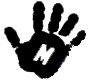 The tattoo is of a shaded hand and the letter m is inside or below it.