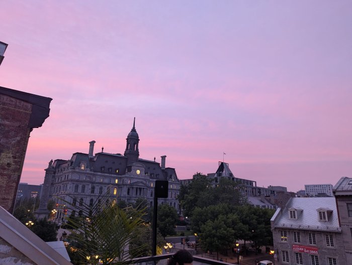 Eventually, we arrive at Perché, this rooftop restaurant that feels like it’s perched above the whole city. When you step in, it’s like you’re floating. The view of Old Port is incredible, and by the time we’re sitting down, the sun’s starting to set. The sky turns this amazing blend of blues and oranges, just bathing the whole city in this warm, golden glow. It feels like we’re seeing the world from up above, like we’re watching the whole city breathe.