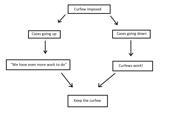 This non sense curfew is a product of our interventionism socialist government. They are so obsessed with interfering in our everyday day life and controlling our thought that they are ready to shut down peoples rights and liberty for even more control. And all that while taxing us like there’s no tomorrow and squeezing every last single dollar they can from our pocket. They’re blaming us and our behavior when there’s a new outbreak or wave but when the cases drop it’s all because of their political measures.