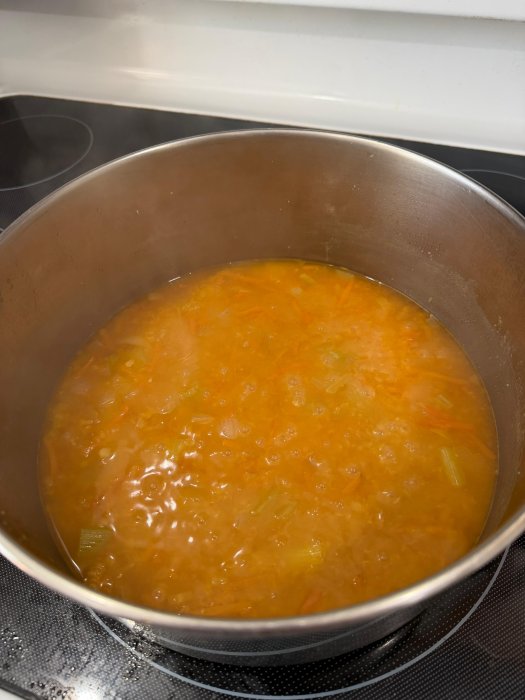 Bring to a boil, and then cook at medium to medium low heat for 30 minutes, at least. Lentils should fall apart and be soft. The soup should have a thick, stew-like consistency.