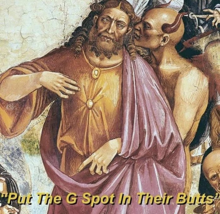 Un homme arrive de travailler, se dépêche et embrasse les seins de sa femme, elle lui dit qu'est ce qui te prend ? Il répond s'est fête de tous les saints. Le lendemain, sa femme rentre de travailler, elle baisse le pantalon de son mari et lui embrasse le pénis ! Lui répond mais qu'est ce qui te prend ? C'est la fête des morts ......