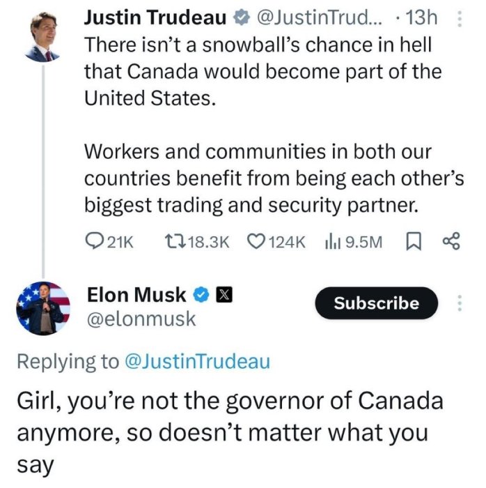 Economic terrorism/threat vis-à-vis le CANADA-----main trading partner---- and armed intervention in PANAMA/GROENLAND/2 allied countries....this THUG has never campaigning on these issues....yeah just bs bs bs....always master of diversion..and nothing